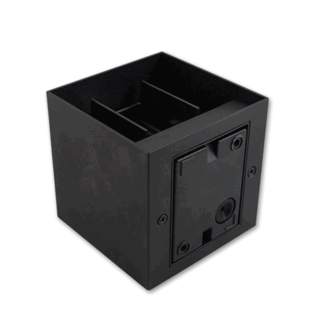 Den här vägglampan är perfekt för fasaden med sin moderna design i RAL 9005. Den har en justerbar ljusvinkel (0° - 120°) och använder en LED G9 ljuskälla på max 9W (ingår ej). Med en IP44 klassning är den idealisk för både bostäder och kommersiella byggnader. Mått: 100 x 100 x 100 mm.