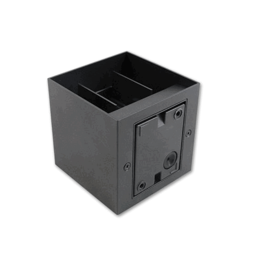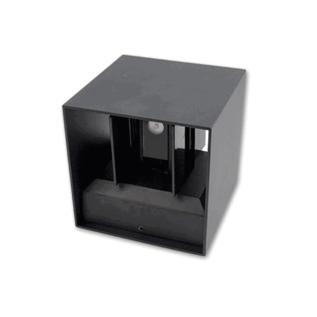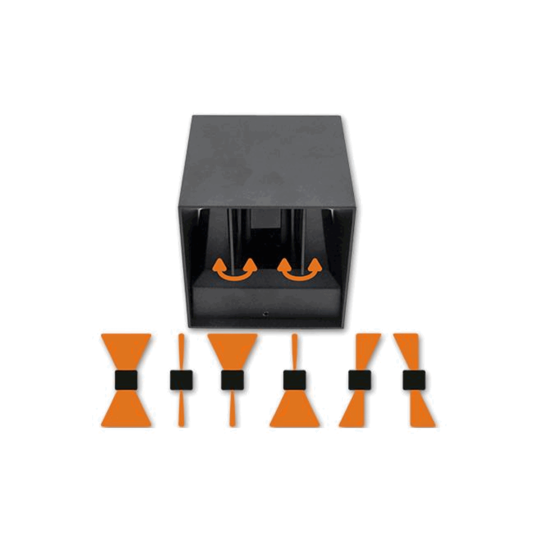 Den här vägglampan är perfekt för fasaden med sin moderna design i RAL 7021. Den har en justerbar ljusvinkel (0° - 120°) och använder en LED G9 ljuskälla på max 9W (ingår ej). Med en IP44 klassning är den idealisk för både bostäder och kommersiella byggnader. Mått: 100 x 100 x 100 x 100 mm.