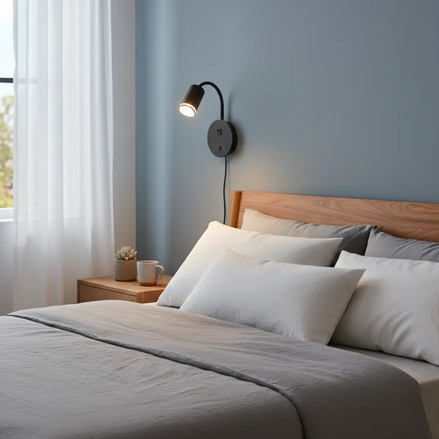 Den väggmonterade installationen innebär att din vägglampa inte tar upp plats på nattduksbordet. En väggmonterad sänglampa gör det enkelt att rikta ljuset exakt när du vill läsa, arbeta eller skapa en lugn atmosfär. Du kan justera ljusriktningen så att ljuset träffar boken och inte din partner. Med 220-240 V 50/60 Hz och GU10-sockel är lösningen stabil och säker, och den inbyggda på/av-knappen gör den dagliga användningen enkel.