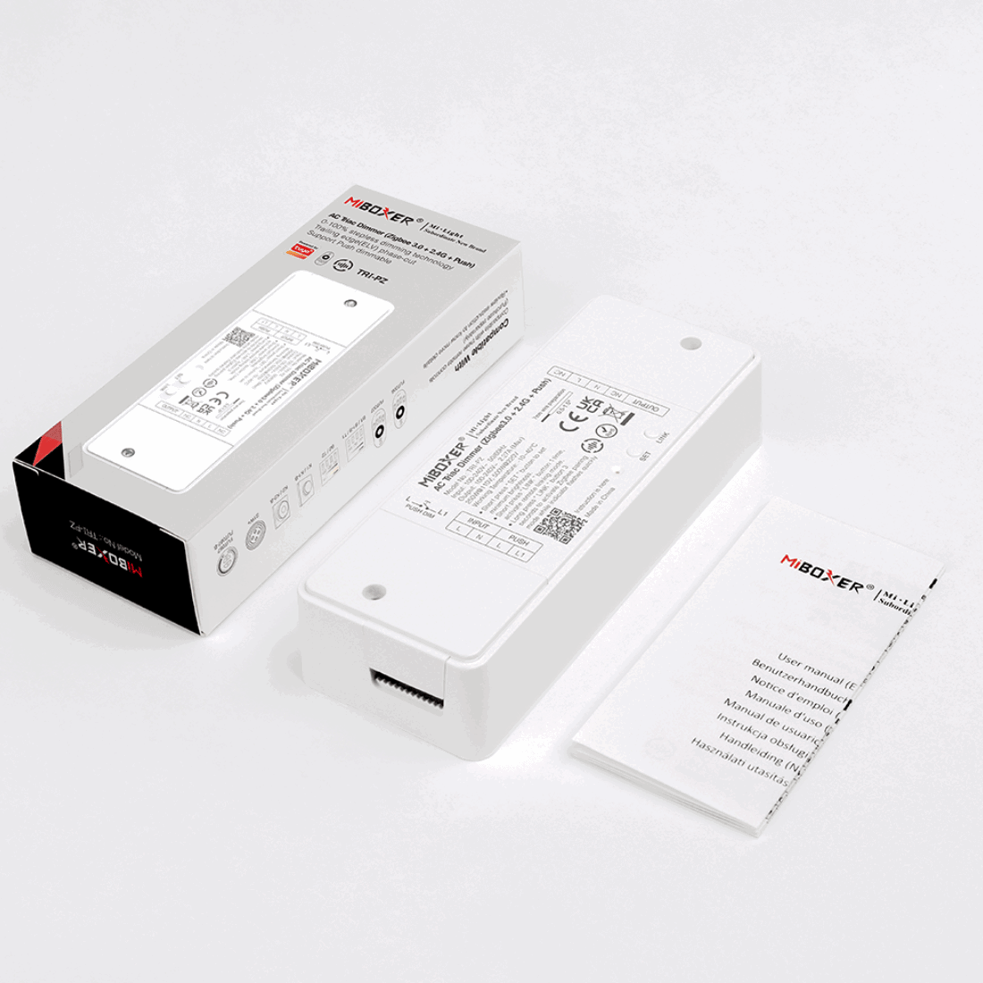 Vår AC Triac Dimmer är kompatibel med MiBoxer Zigbee gateway, som tillåter dig trådlös dimmer, fjärrkontroll, timing och gruppstyrning av dina belysningsinstallationer. Utrustad med banbrytande teknologi som fasskärning i bakkant gör denna enhet effektiv och pålitlig i alla rum i hemmet.